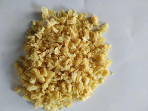 一、產品應用:拉絲蛋白的前處理拉絲蛋白的一般狀態為干燥固形物(水分含量約10%),在使用前必須讓拉絲蛋白吸水軟化。充分吸水后的拉絲蛋白會完全